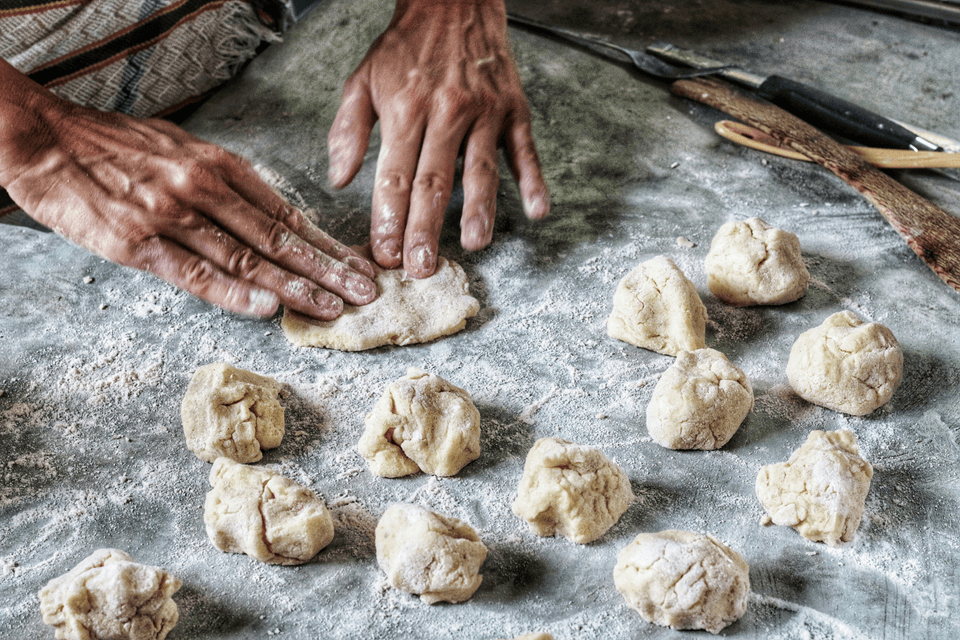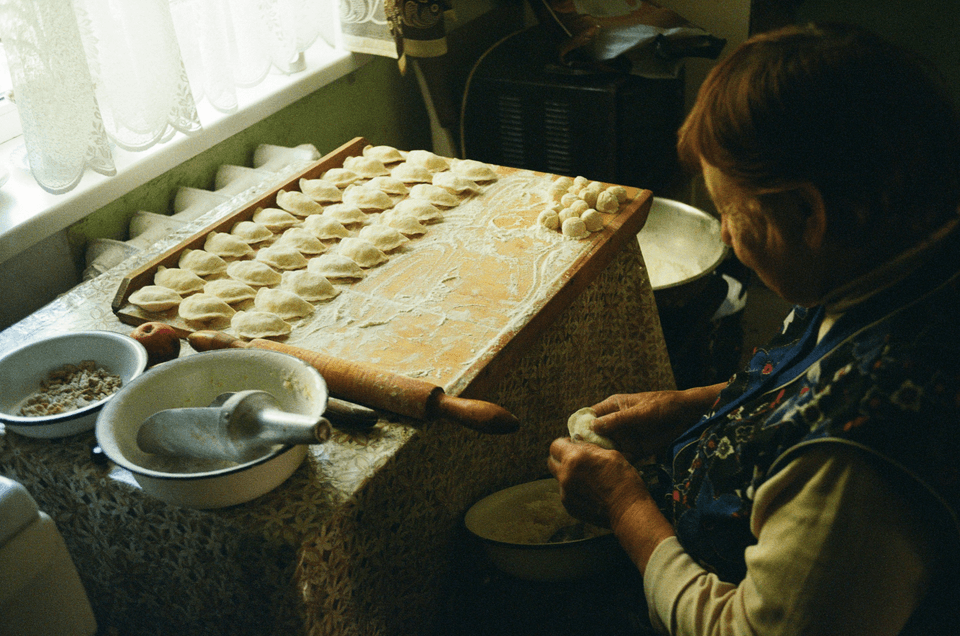 熟練の職人が、伝統的な製法で水餃子を手作りしています。